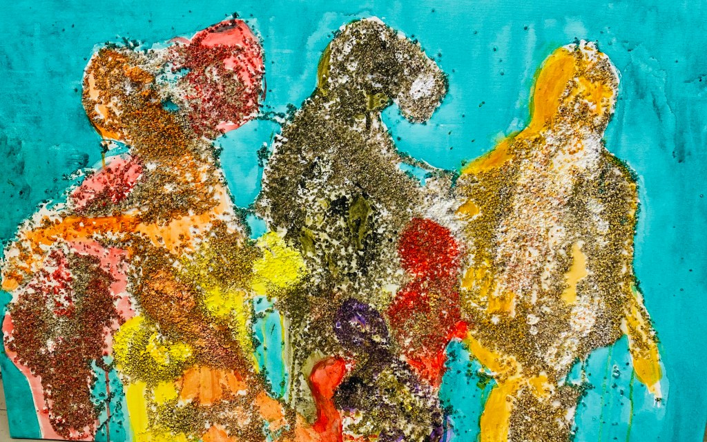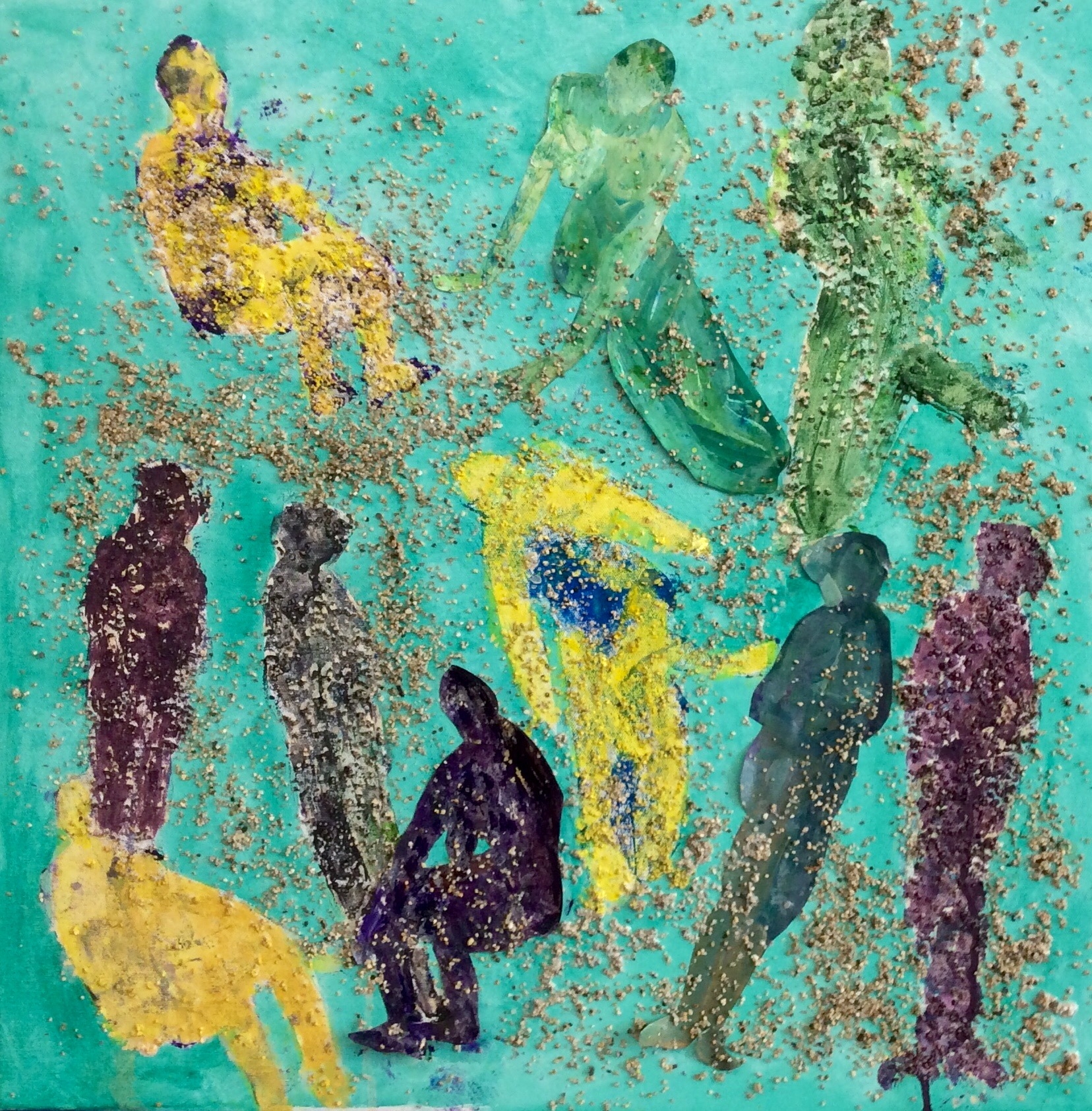 Families Merging Into One Another. Acrylic and Sand. (Before Coronavirus) H. Jacobson
